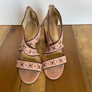 CL by laundry Strappy Criss Cross Suede Blush Color Sandal With Heel Zip Closure