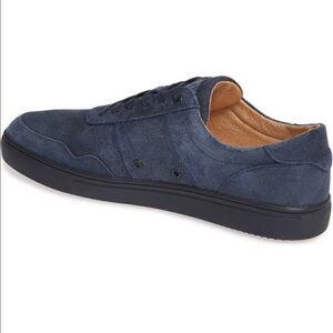 Astreamlined sneaker is crafted from lustrous leather and suede and detailed with perforations for a clean, versatile look.
