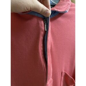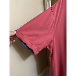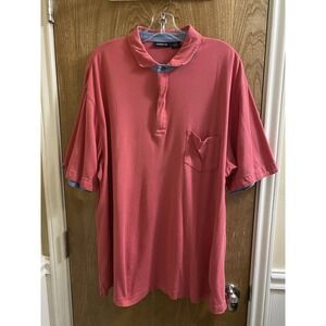 CLAIBORNE Cotton 1/4 Zip Neck Short Sleeve Polo Shirt XLT Pink Blue Fold Trim