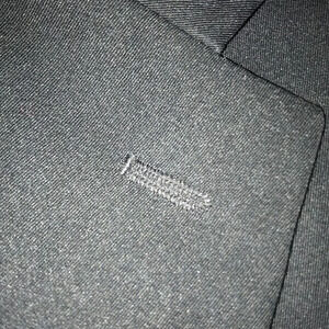 Lapel flower buttonhole, 3 button front, 3 button cuffs, inside and outside pockets
