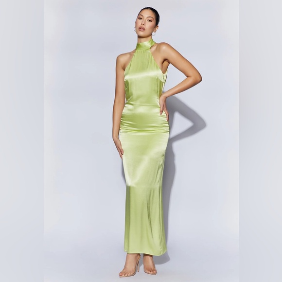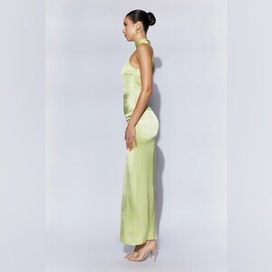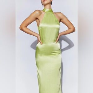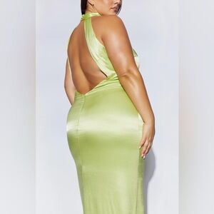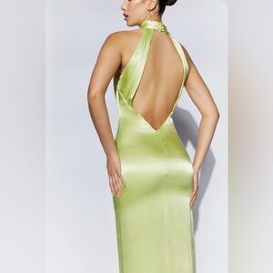 Backless Maxi Satin Dress - Pistachio Green