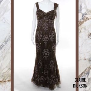 CLAIRE DICKSON Stunning Brown Hand Sewn Bead Gown