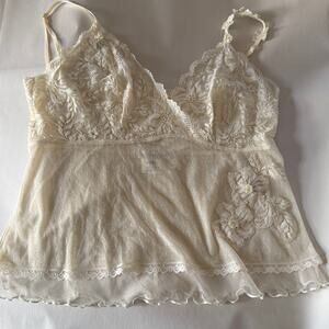 CLAIRE PETTIBONE | Sheer Ivory Lace and Netting Floral babydoll Camisole Medium