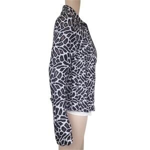 CLARA S. Black Silver Semi Sheer Animal Print Zip Jacket