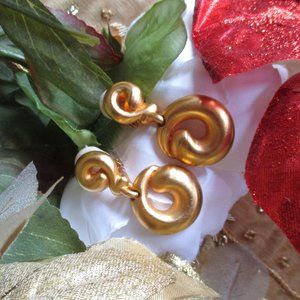 ๐น๐น CLARA STUDIOS (VINTAGE) GOLD SWIRL CIRCLE EARRINGS โ CLIP-ONS ๐น๐น NWOT