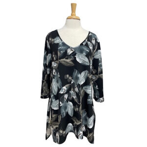 CLARA SUN WOO 3/4 SLEEVES SCOOP V NECK BLACK/GRAY TUNIC