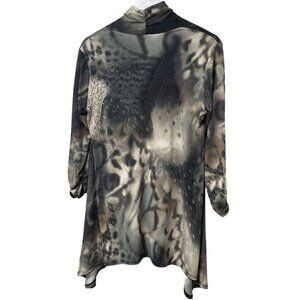 CLARA SUN WOO Tunic Top Small Stretch Jersey Artsy Modern Gray Print 3/4 sleeve