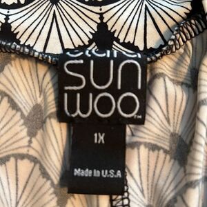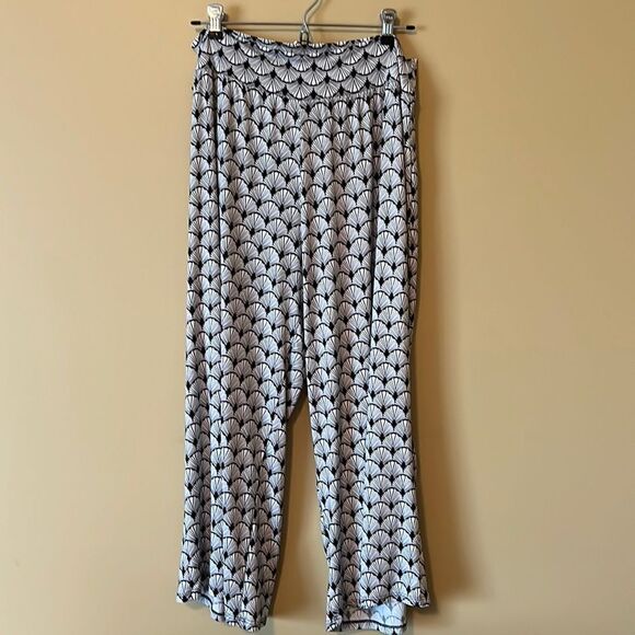 CLARA SUN WOO cropped palazzo pants. Black / white shell pattern. 1x