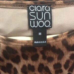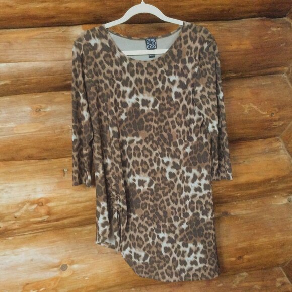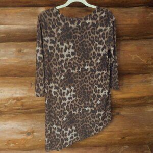 CLARA SUNWOO Animal Print Leopard Asymmetrical Ruched Pullover Tunic Size Medium