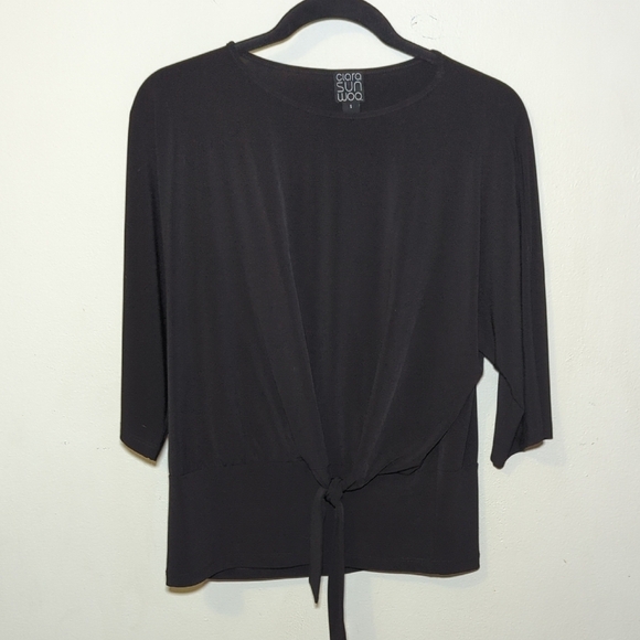 CLARA SUNWOO Elegant Black Minimalist Tie-Front Top Women's Size S