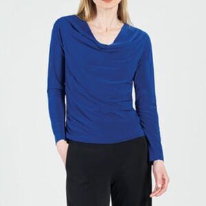 Clara Sunwoo Cowl Neck Side Ruched Top in Cobalt Blue Size Small New NWOT