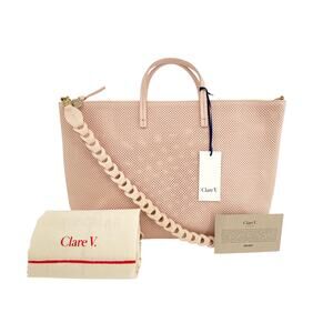 CLARE V. Attache Tote in Ballet Perforated with Leather Link Strap