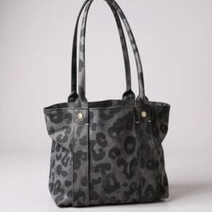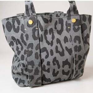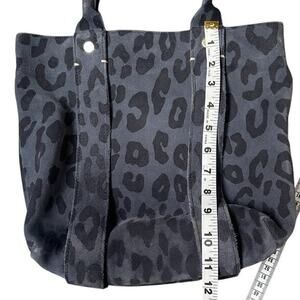 CLARE V Suede Leopard Print Tote Shoulder Bag Gray Black Animal Print