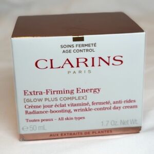 NIB - Clarins Extra-Firming Energy + Radiance Boosting Moisturizer 50 mL What it is: A dual-action, radiance-boosting, and visibly firming day moisturizer for skin that looks firmer and smoother with a youthful-looking glow.