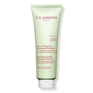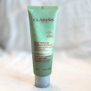 NIB - Clarins Purifying Gentle Foaming Face Cleanser Clarins Purifying Gentle Foaming Face Cleanser with Salicylic Acid is a creamy, rinse-off foaming cleanser for oily skin that’s soap and SLS free and leaves skin clean, refined, and shine free.