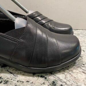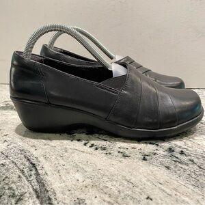 CLARKS (26101987) WOMEN'S "ESHA ESSY" BLACK LEATHER SLIP-ONS - SIZE 9M
