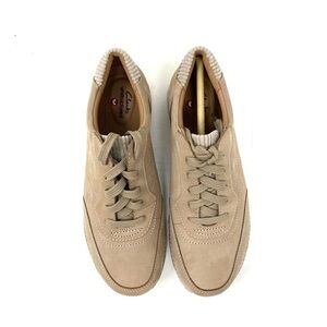 CLARKS APPLEY TIE SAND NUBUCK Comfort Shoes WIDE