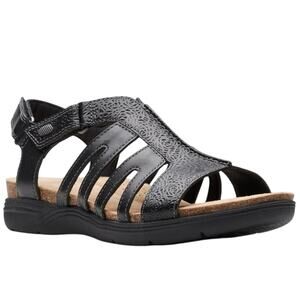 CLARKS April Belle Black Leather Sandals US Size Womens 12 / Eur 44 New w/o Tag