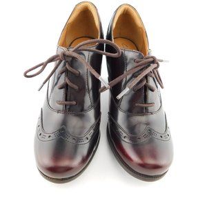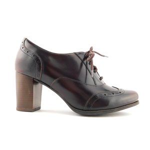 Dark Burgundy Leather Lace Up Block Heel Victorian Ankle Boots