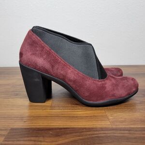 CLARKS Artisan Red Adya Luna Heeled Suede Leather Pumps SIZE 8.5