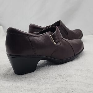 CLARKS BENDABLES BROWN HEELED LOAFERS BOOTIES LEATHER SIZE 8.5W