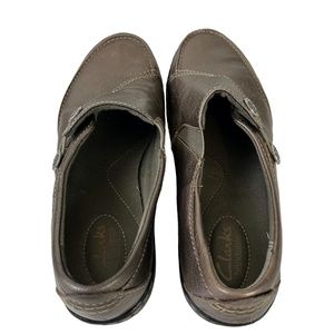 CLARKS BENDABLES Metallic Bronze Loafers Flats Genuine Leather Slip On Shoes 7