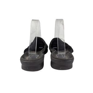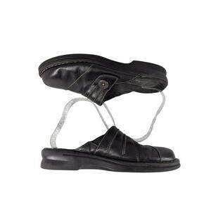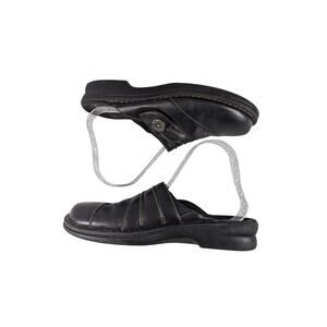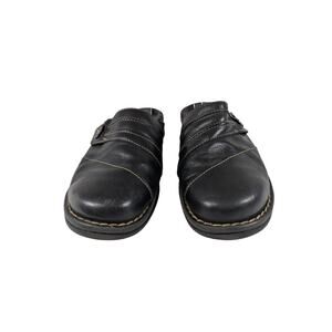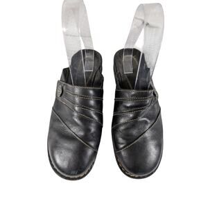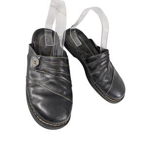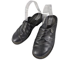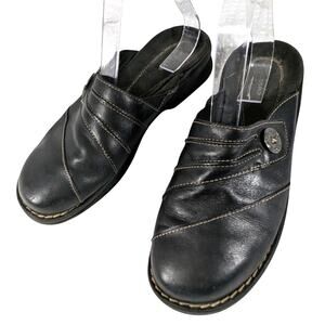 CLARKS! BLACK GENUINE LEATHER LAYERED W/BUTTON CLOGS MULES RUBBER SOLE! SZ 8M
