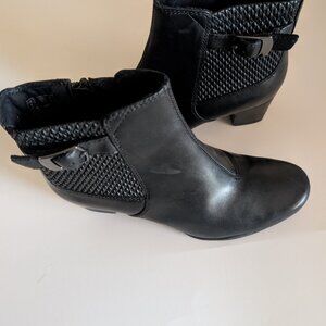 CLARKS BLACK LEATHER ANKLE BOOTS, SIZE 6.5, LIKE NEW