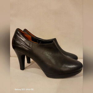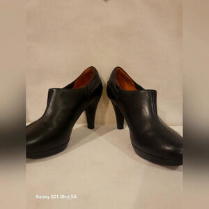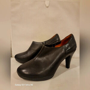 Clarks Indigo black leather shoe boots/booties (sz 9). Heel height is 3-1/2". The boots are in great condition. Please see all pictures.