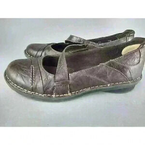 CLARKS BROWN LEATHER MARY JANES LOAFERS SLIP ONS DRESS SHOES US WOMENS SZ 8.5 M