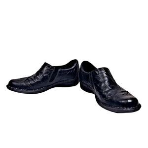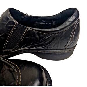 Versatile Crinkle Black Leather Slip On Zip Up Casual Shoes by Clarks are in used, but Great Preowned Condition.