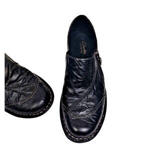 CLARKS Bendables Crinkle Black Leather Slip On Zip Up Casual Shoes US 8M 67664