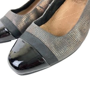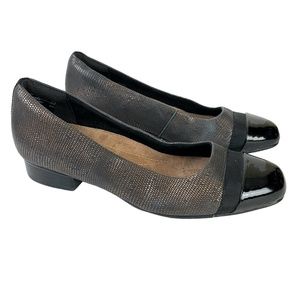 CLARKS Black Bronze Slip On Patent Leather Loafers Slip On Shoes Flats sz 7 M