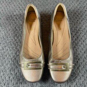 CLARKS Blanche West Womens Shoe Size 8 Gold Metallic Leather Comfort Ballet Flat
