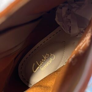 CLARK'S Breccan Myth Cognac Brown Suede Ankle Bootie EUC Size 9.5