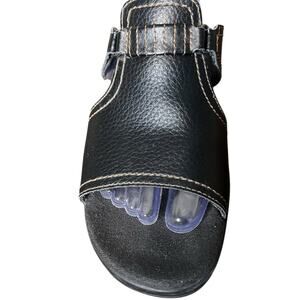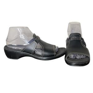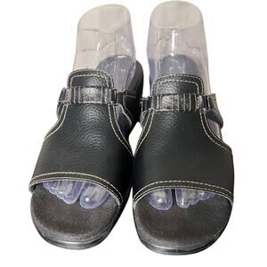 CLARKS Brown Leather Open Toe Slide Slip On Sandals Contrast Stitching Women’s 8