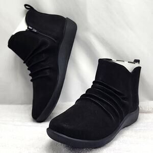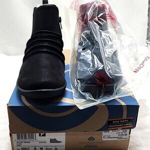 CLARKS CLOUDSTEPPERS●SILLIAN GEMMA BLACK ANKLE BOOTS■LADIES 8 ●WIDE●NWB●CUTE●