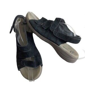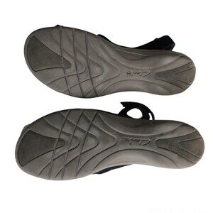 CLARKS COLLECTION Black Suede Soft Cushion 3-Strap Adjustable Sandal Size 12 N