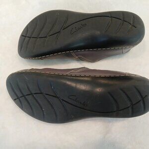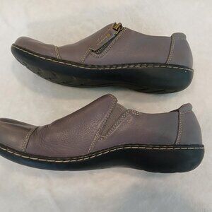 Leather is textured and there is a zipper embellishment (not real). Great condition, size 8M. If you like Clarks, check my closet for more items.