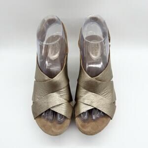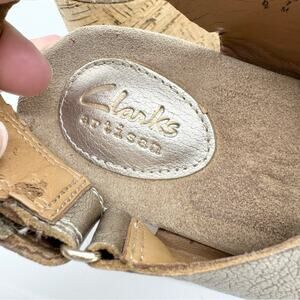 CLARKS Caslynn Diem High Heel Wedge Sandal Gold Metallic Size 7 Office Dressy