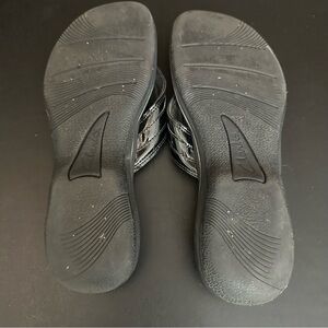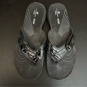 CLARKS Cloudsteppers Breeze Sea Black Patent Flip Flop Slip On Sandal Ladies 10
