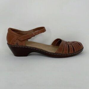 CLARKS Heeled Sandals Brown Leather Ankle Strap Size 10