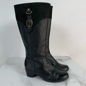 CLARKS INGALLS DELAWARE LEATHER TALL FASHION RIDING BOOTS Size 8.5 Black