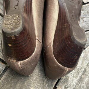 CLARKS LOW HEELED WEDGE BRONZE PUMP 9M