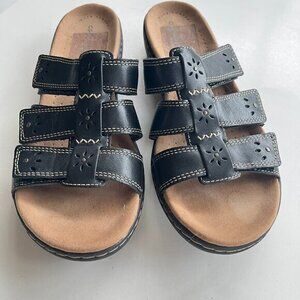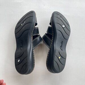 CLARKS Leisa Sprinf Black Leather Slides Slips on Sandals Womens Size 10M Shoes