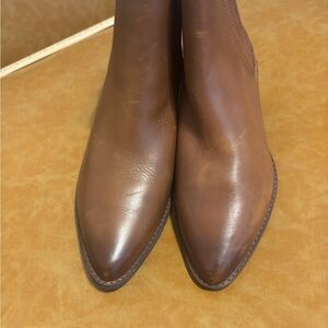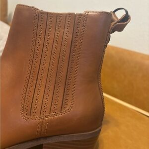 CLARKS: MORZINE TOP BOOTS IN TAN LEATHER SIZE 9.5 NWOB BOOTIES BLOCK HEELS