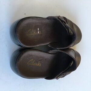 CLARKS MULES BROWN LEATHER SHOES WOMENS SIZE 8.5M SLIP ON