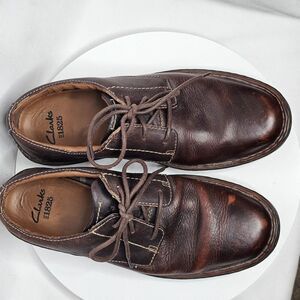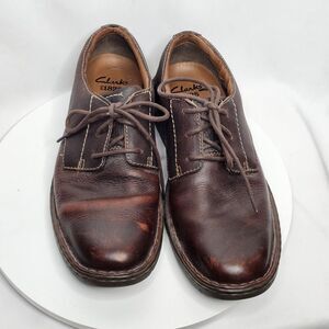 CLARKS Mens Stratton Way Distressed Oxford Lace Up Shoes Brown Leather Size 9.5
