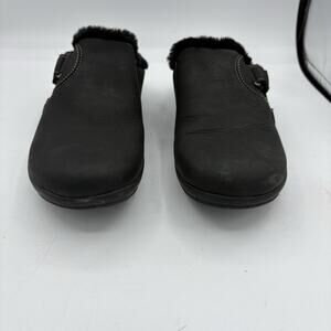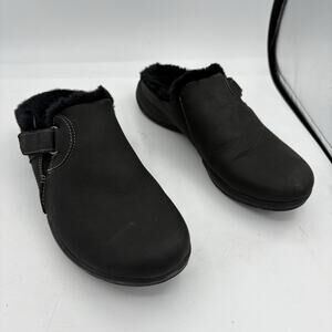 CLARKS Mule Clogs Womens Size 7 Roseville Black Lined Slipper Slip On