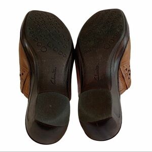 CLARKS Mules Slip on Shoes Camel color Etched design Small heel Size 10 Medium